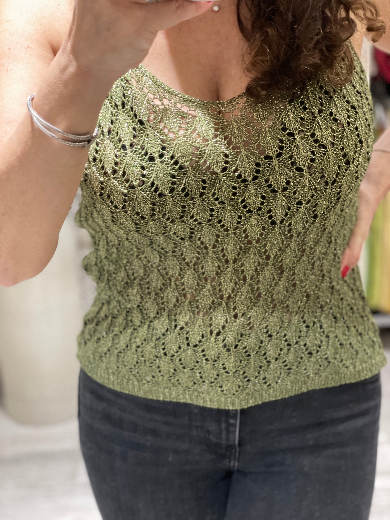 DEBARDEUR/TOP LUREX ANANAS KAKI
