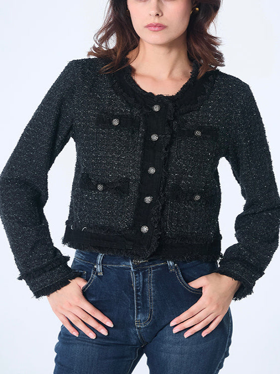 VESTE TWEED NOIRE A BOUTONS BIJOUX