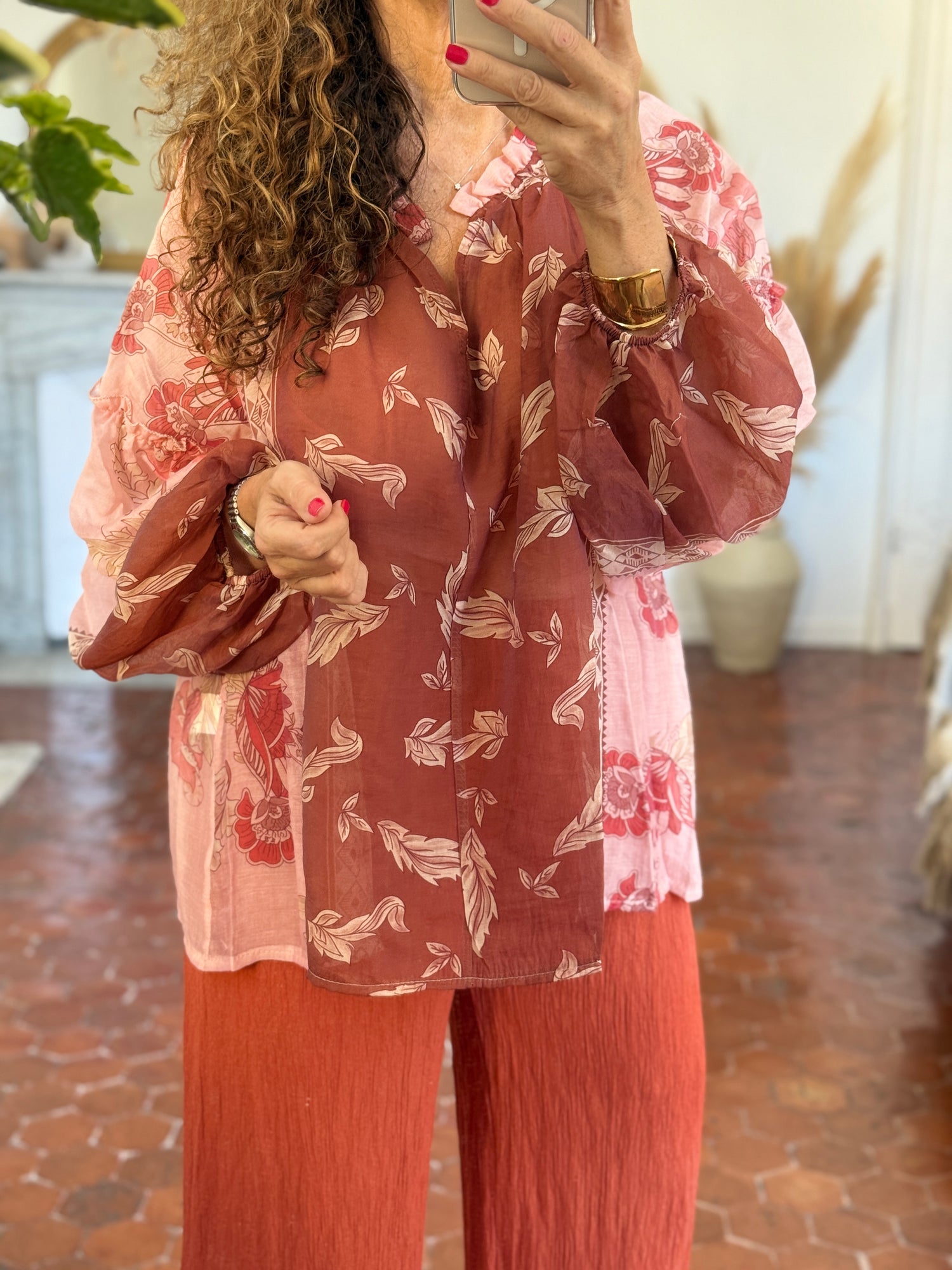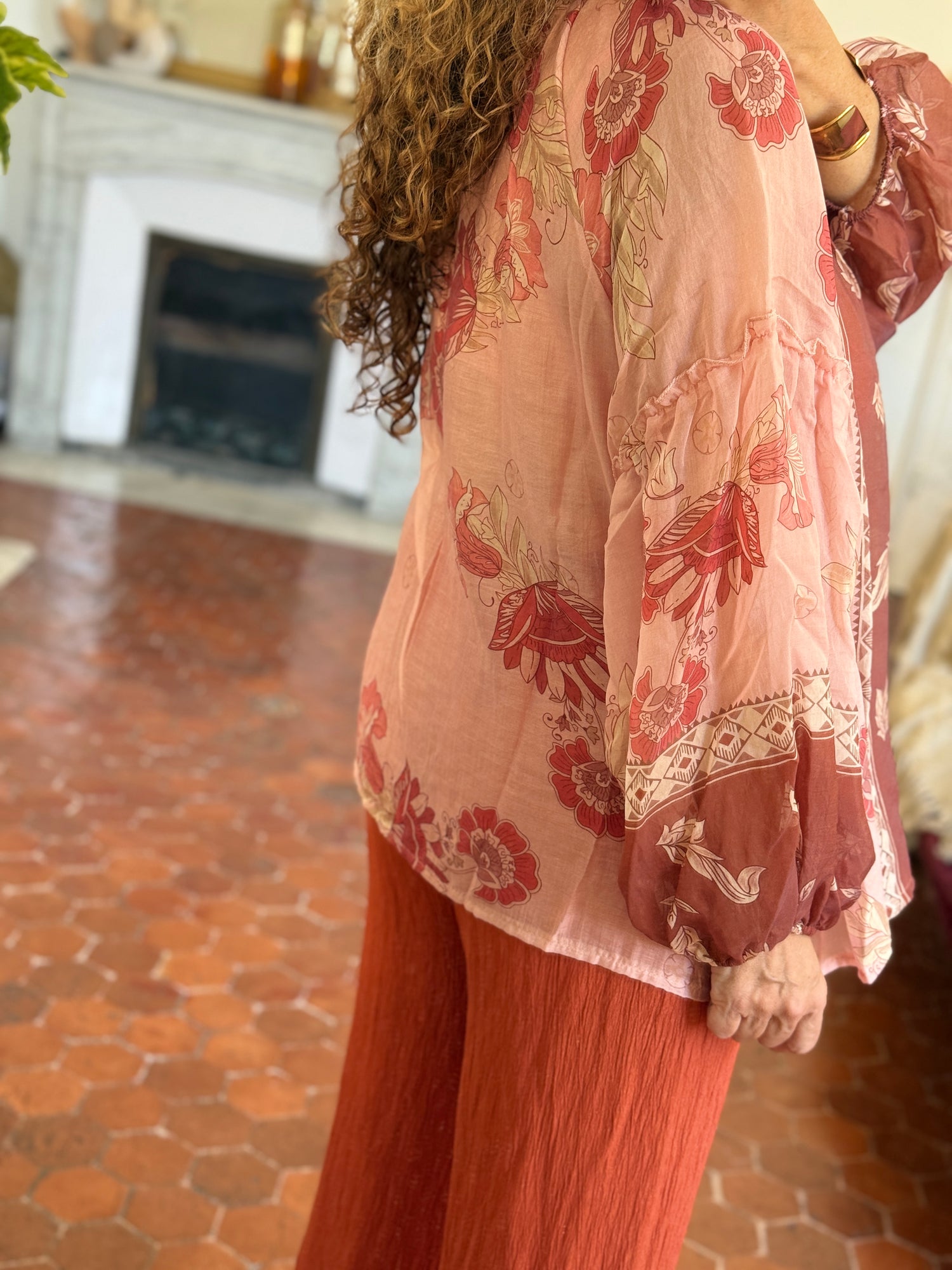 BLOUSE BOHEME SAUMON IMPRIME FLORAL