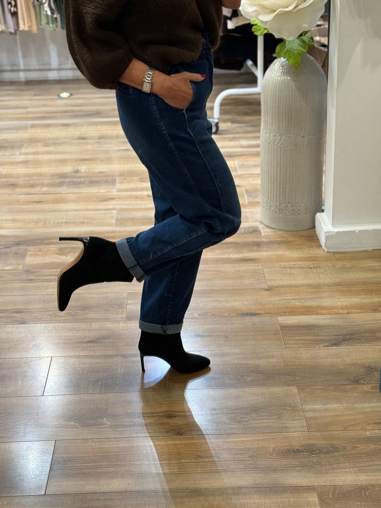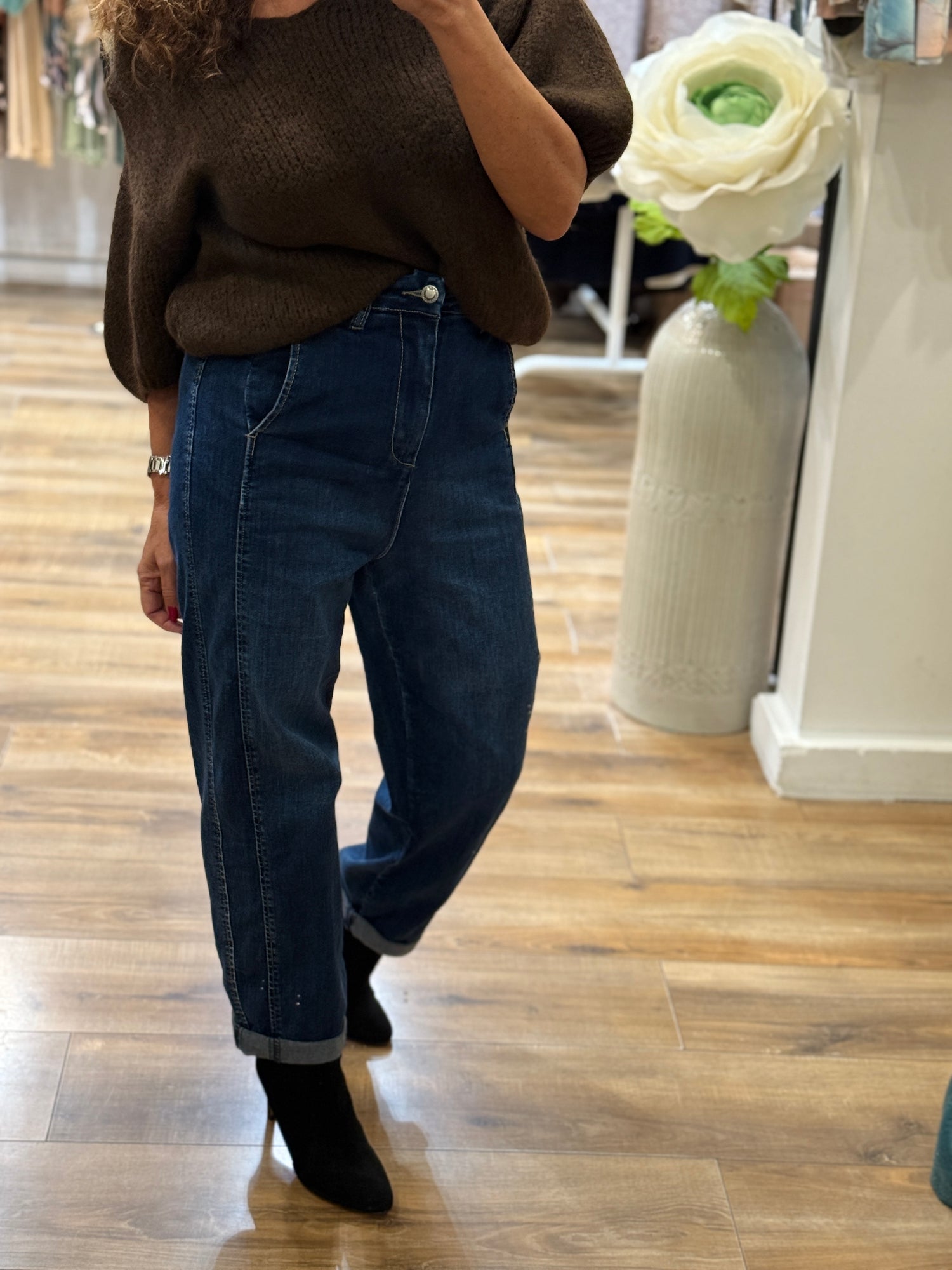 Avec sa taille haute et sa jambe droite légèrement resserrée, ce jean crée une silhouette équilibrée et féminine. Les revers au bas apportent une touche casual et tendance.