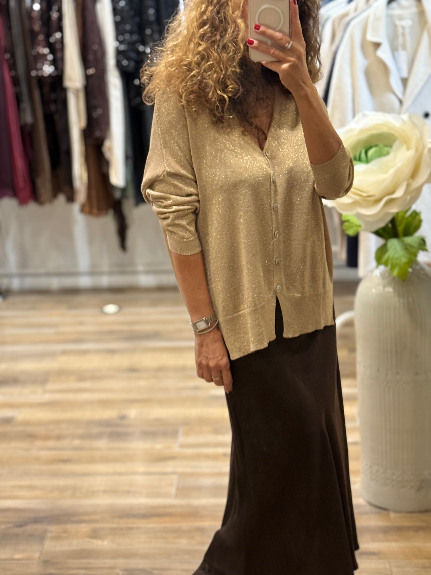 Facile à associer, elle se porte aussi bien avec un gros pull, un cardigan lurex ou une blouse plus habillée. Une jupe intemporelle, chic et féminine.